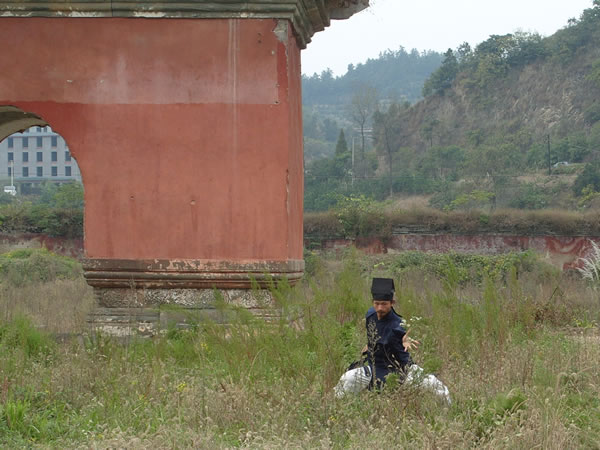 图为师爷钟云龙道长在元和观练功场,现场表演武当太极二十八式。