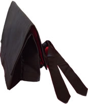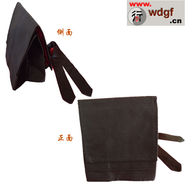 庄子巾:亦称冲和巾,南华巾。传说是南华真人庄子所制。该巾下面为方形,上部为三角形,状如屋顶。佩戴此巾,颇象南华真人一样无拘无束,自有出尘之表。