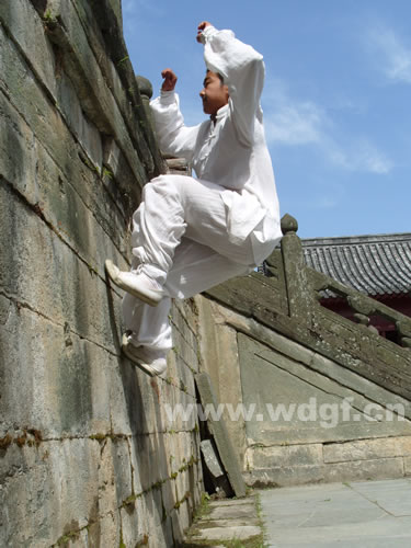 3)练好倒挂金钩和蛙跳,再练走壁功就游刃有余了,怎样让自己在垂直的墙面快速向上踏上3、4步,并达到5—6米的高度,却非一日之功 ,走壁功的原理就是速度和力学点,必须在反复的练习中,去用心琢磨,如此持之以恒,你一定能实现轻功梦想。
