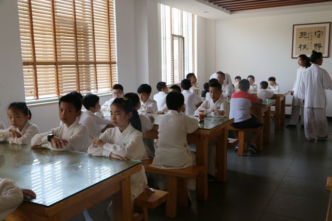 “未曾学艺先学礼,未曾习武先习德”,夏令营的孩子们在师行武馆养成早睡早起、按时吃饭、按时练功、按时休息的生活规律,个人卫生习惯、谈吐言语之间都体现道家礼仪之风。