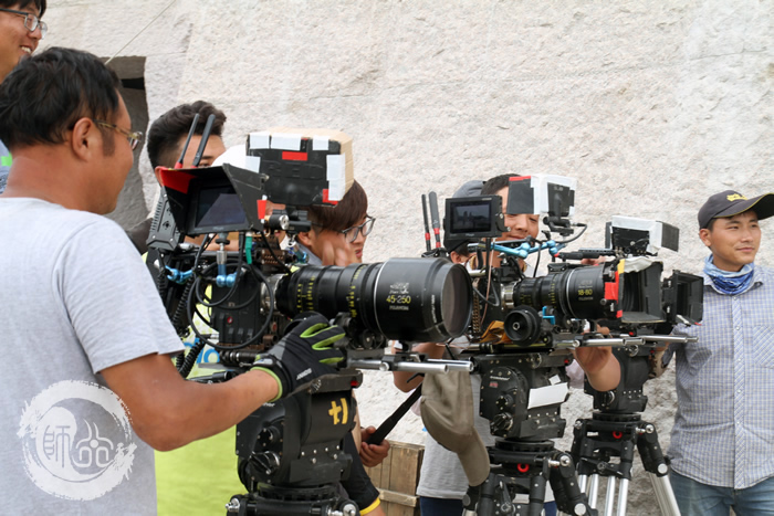 一小时的车程、半小时的步行到达片场后,看到老子庙前已经架好三台拍摄仪器在紧锣密鼓地录制。