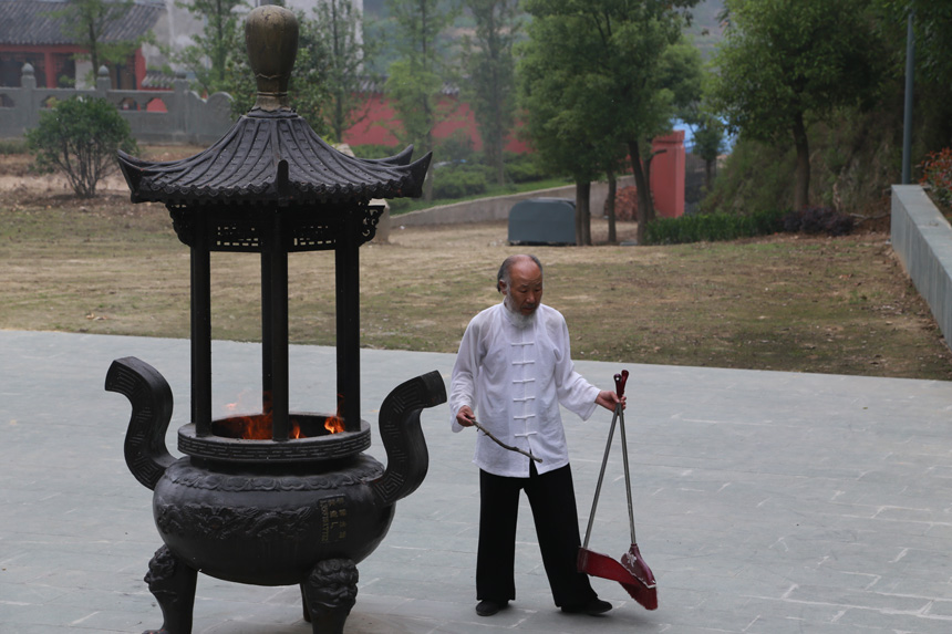 跟张师瀚道长拳脚一致的少年叫史凯大,当时刚满14周岁,已在师行传承武术班学习满三年了。学满三年结业测试通过后,即会免除他的一切费用,留在师行道长身边学习上乘功法。