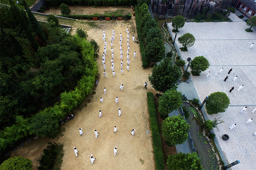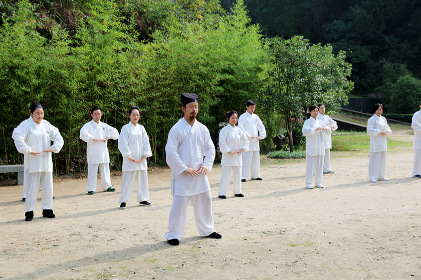 师行武馆中间一层平台,是上清台。师行亲授班的学员们接受陈道长的太极拳亲授课,亦是在此地进行。陈道长悉心为学员们讲解动作要领,指出其动作的不足之处,大家谨记要领,认真练习。