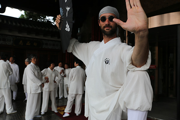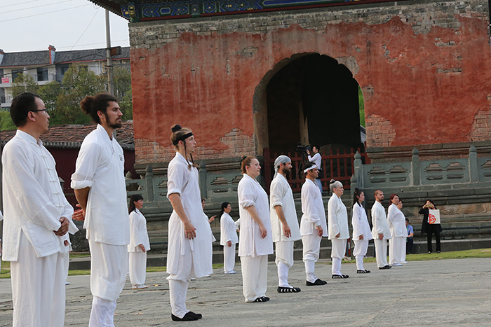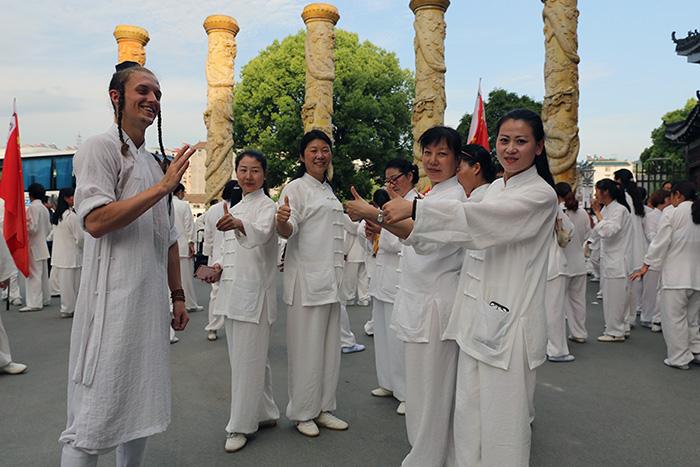 在论坛期间,来自国内外的4000多名太极拳爱好者和团体在武当山境内的19个点表演,让参与盛会的海内外嘉宾领略了武当太极的魅力。师行武馆也受邀参加在玉虚宫的表演,武馆派出的外国学员成为万众瞩目的焦点。气宇非凡,颜值高,成为在场所有外籍表演者的颜值担当,而且功夫还了得。在表演活动结束后,无论走到哪里,更是享受到了明星般的待遇,有大批的行人和太极拳爱好者驻足拍照和合影留念。当有其他地区的太极拳爱好者上前与他们交流时,他们温和的气质也给对方留下了良好的印象。这些都反映出师行武馆对学员”内外兼修”的教学理念。