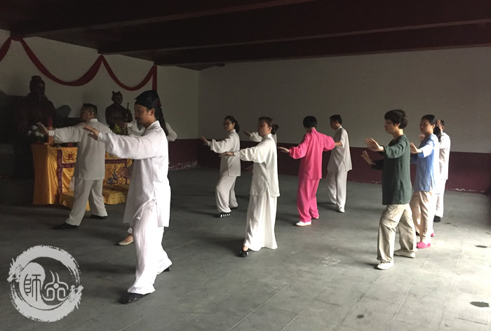 学习过程中,道长和学员们分享自己的生命经验故事,儿时的害羞不开窍,多年来如何透过太极开窍,如何透过太极增智慧。学员们听了甚是感动。应大家热烈邀请,道长于三丰祖师殿演练了太极十三式慢拳和一套武当快拳。
