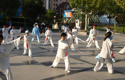 2005年底再一次回到武汉看望老学员,同时在江滩传播太极养生功