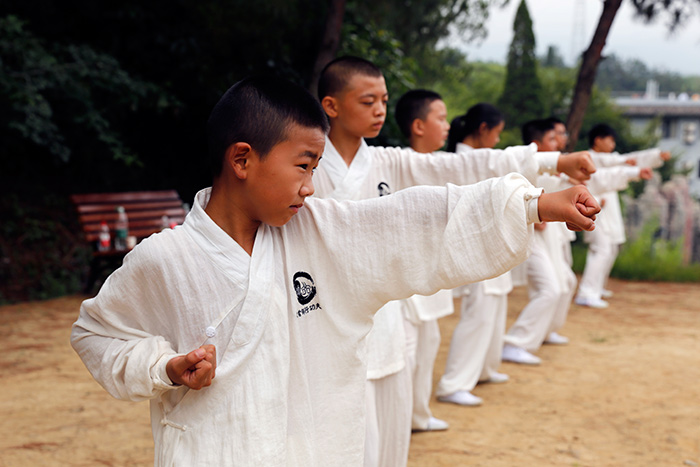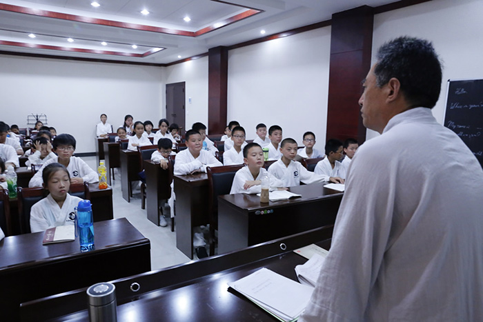 武馆中的小朋友除了有来自祖国各省包括港澳台地区,还有来自美国、法国、意大利、葡萄牙等近三十个地区和十多个国家。他们来自不同的成长环境,有着不同的教育背景。但是在这里,抹去一切标签,他们都是来学习功夫的小少年。