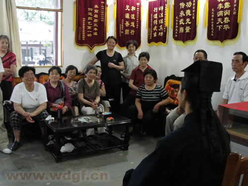 交流会上,谈到师傅当年传功场景更加让人钦佩,风餐露宿,不辞辛苦,将武当太极文化推广至武汉各大公园,得以普及,把健康带给了大家。时至今日,仍记忆犹新,从公园传功到开馆授徒,经历了数年的风风雨雨,才取得了今日的成就。当然,这跟众学员们的支持是分不开的。如今,武馆已步入正规,建设更加完善。看到这些,学员们纷纷面露喜色,大为赞扬。