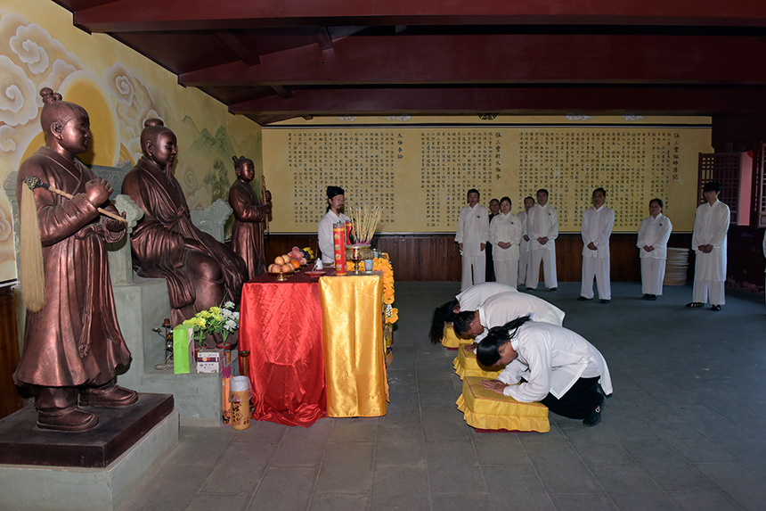 在全真道祖庭所在地——陕西终南山,先祖师蒙火龙真人授修真要道,在终南学道四载后,先祖师奉师命出山隐世修行。在这期间,他精研勤修内丹养生之学及武学技击之法,并能将此两门绝学融会贯通,自成体系,从而使其道家内外双修功夫达到出神入化的高超境界。