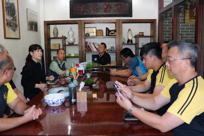 在参观完武馆后,大家欢聚在武馆的汇缘堂品茶论道,相互交流学习。这是即香港三丰联谊会、重庆拜访团之后,本月第三批来师行武馆的参访团。随着师行武馆和各个团体之间的互动增加,将让越来越多的人认识武当道家文化的魅力,武馆将继续以诚挚热情的态度迎接来馆的参访团,让更多的人爱上太极,爱上师行。