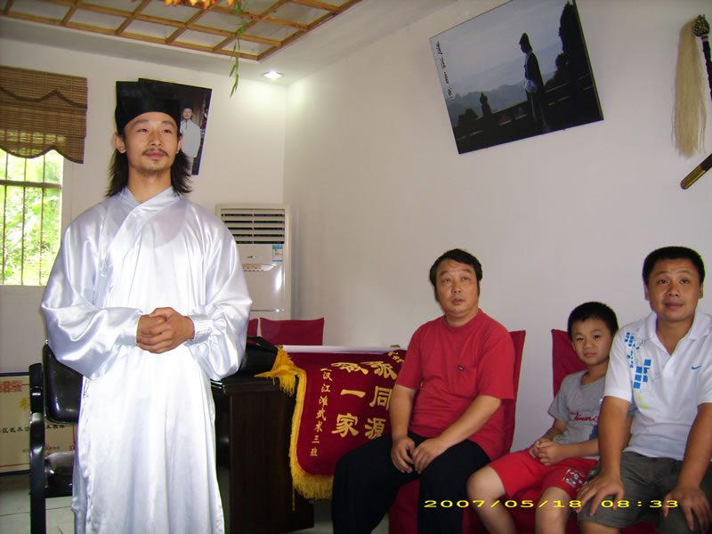 二00七年八月十一日,武汉武当师行太极班学员(武汉江滩武术一班、武汉江滩武术二班、解放公园武术班、武汉东湖武术班)分别派上代表来到仙山武当送给师傅最真挚祝愿!以及武汉市江岸区武术协会会长、秘书长也前来祝贺!