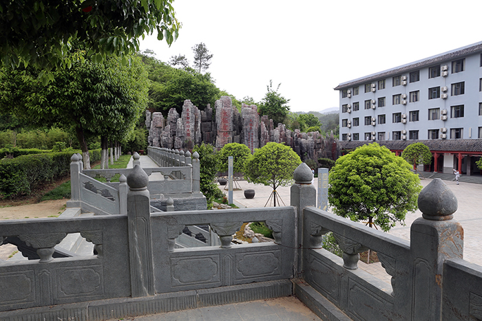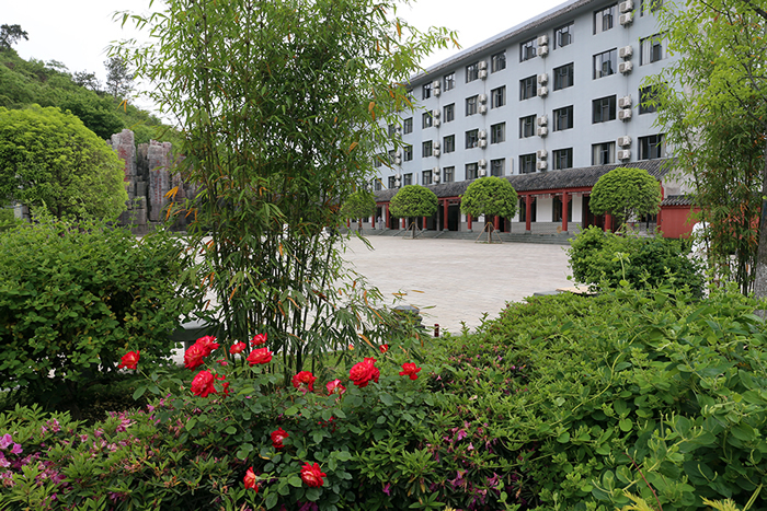 沐浴着朝阳与晨露,沿着太清台、上清台、玉清台,一台一景,拾级而上,走过馆中的每一颗桂花树,一一记在心中。太清台上12颗桂树,分布在前后两边,香味清雅。玉清台,以桂花园为主,金桂、银桂共16颗,花香最为浓郁。玉清台共有32颗桂树,环绕练功场一周,象征无极图。山风吹过,就有暗香盈袖。整个师行武馆60颗桂树齐开花,怪不知道每天早晨,推开窗户就有桂香袭来呢!