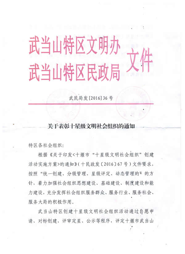 特区文明办徐主任表示希望被表彰的社会组织能进一步发挥自身优势,服务武当特区群众与社会大众,也期望此举能抛砖引玉,让各社会组织积极争取十星级文明社会组织的荣誉,为文明武当建设尽一份心力。