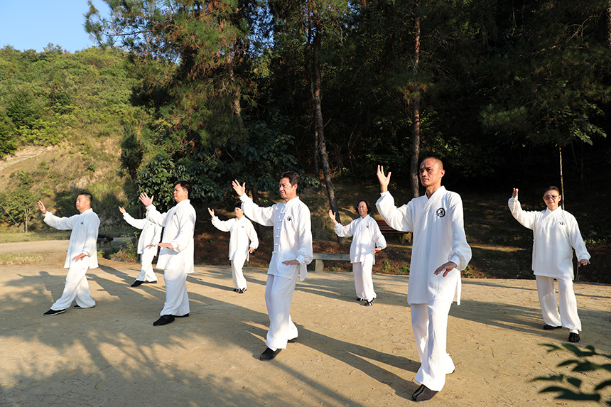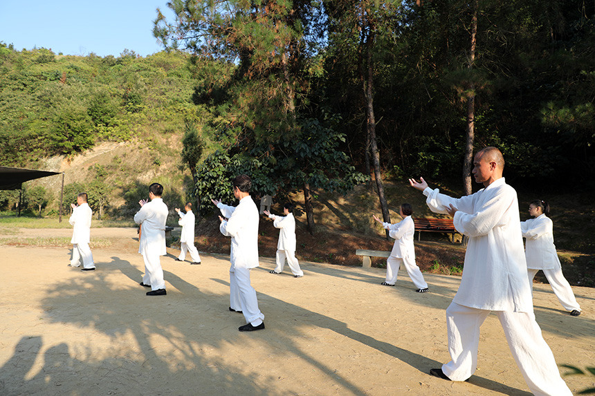 参加提升班的学员们,在这片清香道场,聆听师行道长亲授,明白太极心法,纠正招式细节,了解实战运用,学习虚实变化,追求神形相合。有学员问师行道长:“太极拳的最高境界是什么?”师行道长回答:“道法自然。”