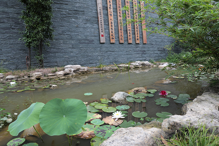 玄武池故名玄武,有其原因。当年建馆之初,师行道长观整馆布局,深感馆内应有一池水,水为善,所谓上善若水,穿过太清台,又盘踞于上清台下,春夏秋冬,皆有此一处活水可观可赏,可相处,实为一种享受,也是一种善念。其形之柔美,又氤氲着太极之神,每当清晨露珠初上,水气发自于池中,烟雾袅袅升腾,其境之幽深,池中之物,灵性具佳。