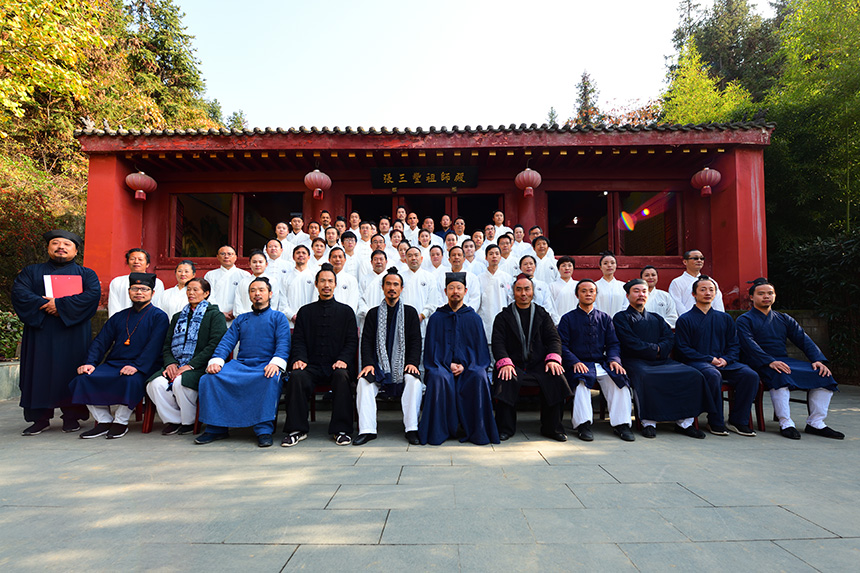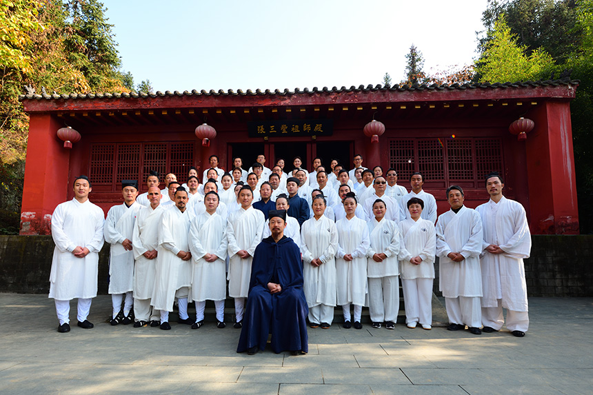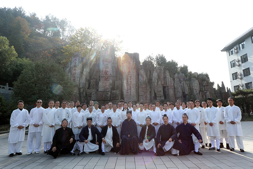 仪式圆满完成。新入门弟子与师父、师伯、师叔、师兄合影留念。本次收徒仪式是陈师行道长自2013年首次收徒以来的第四次收徒,27名有缘人怀着一颗对道教文化和武当武术孜孜以求的虔诚之心,对陈师行道长的感恩之心,在这个可喜可贺的日子里,经过收徒仪式的洗礼,终于如愿以偿,正式成为武当三丰派第十六代弟子。