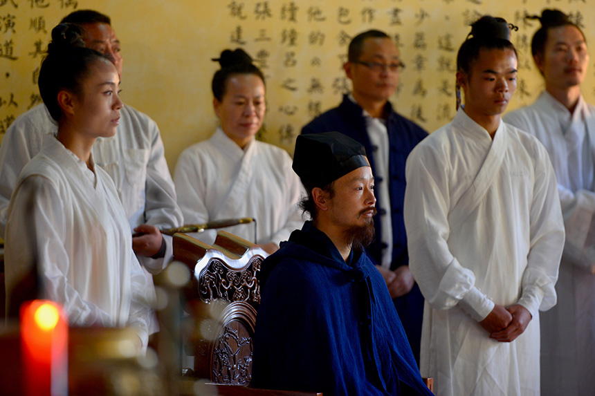 殿外弟子们精神振奋,齐声道:“师承武当、行道天下、道在心田、善传人间!恭请师尊、登坛授徒!”陈师行道长步入殿内,坛前焚香,跪拜祖师,入左座。