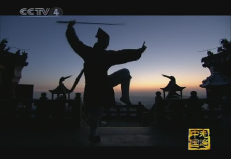 陈师行道长游刃于《逍遥天地》之间。央视为打造《太极武当》的旷世之作,就视频画面而言,场景的设计,拍摄的技巧,时空、星辰、季节、气候乃至灯光的运用、人物的选择与表演等方面都力争做到尽善尽美。特别是作为《太极武当》压轴大戏的第八集《逍遥天地》的拍摄,央视对片中武当剑出演者的要求更是近乎苛刻,在择优选拔中力挺武当三丰派第十五代功夫传人、武当剑世界冠军陈师行道长担当武当剑出演重任。陈道长不负众望,走进《太极武当》大片,凭借自身深厚的内功修为和精湛的武当剑术,用出神入化的武当剑锋,游刃于《逍遥天地》之间,不仅为观众展示了武当剑的玄妙与魅力,更为该片的绚丽而添彩。观众在欣赏之余可曾知晓,陈师行道长在《太极武当》之《逍遥天地》拍摄中的经历?品尝何等的艰辛?为此,我们摘取《逍遥天地》片段讲述陈师行道长在拍摄中幕后鲜为人知的故事,以飨读者。