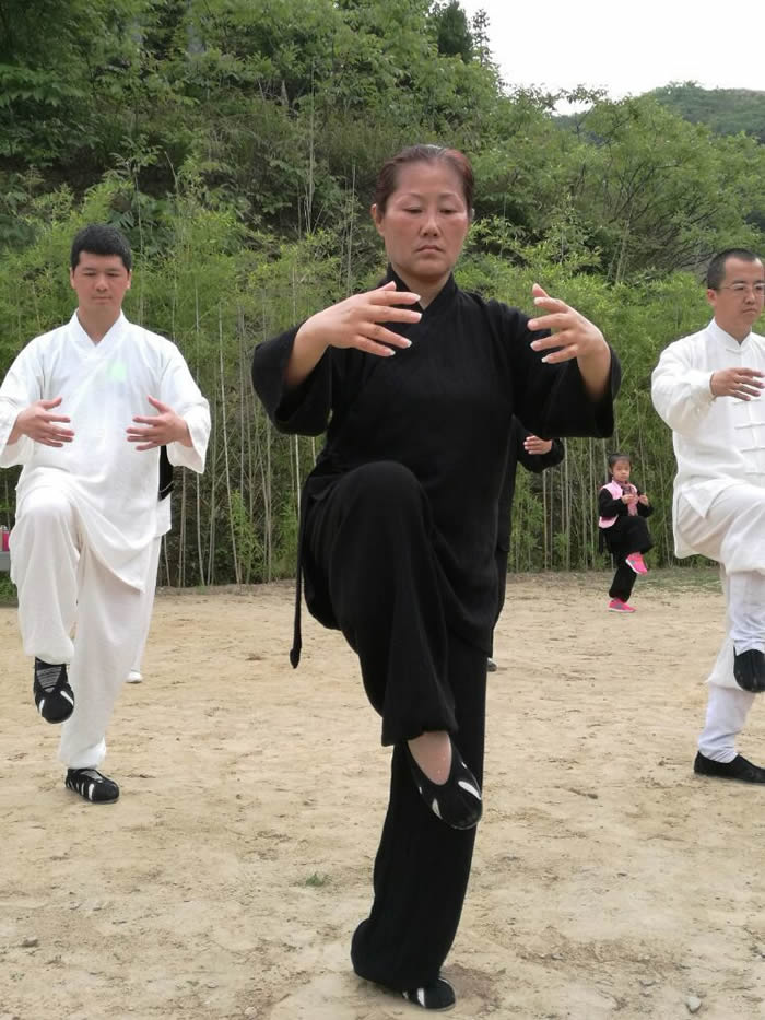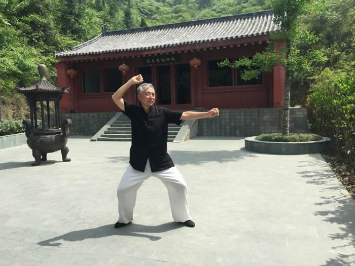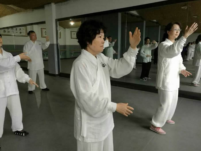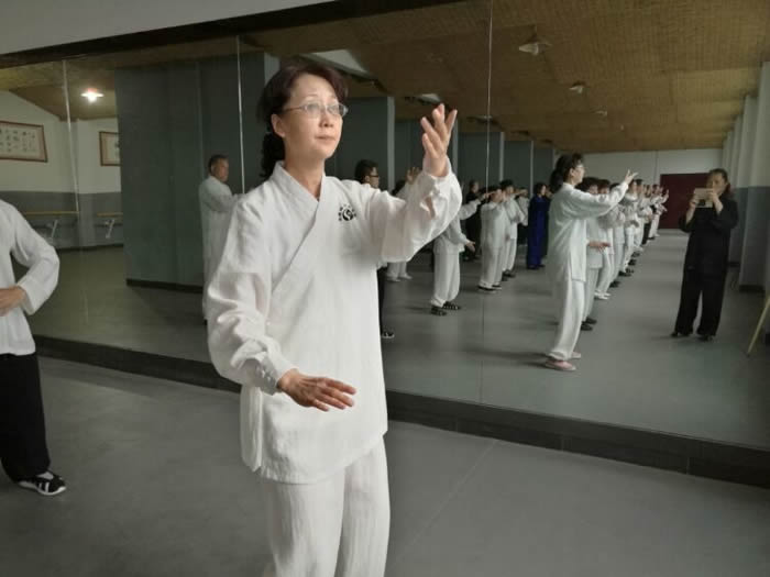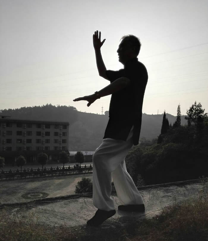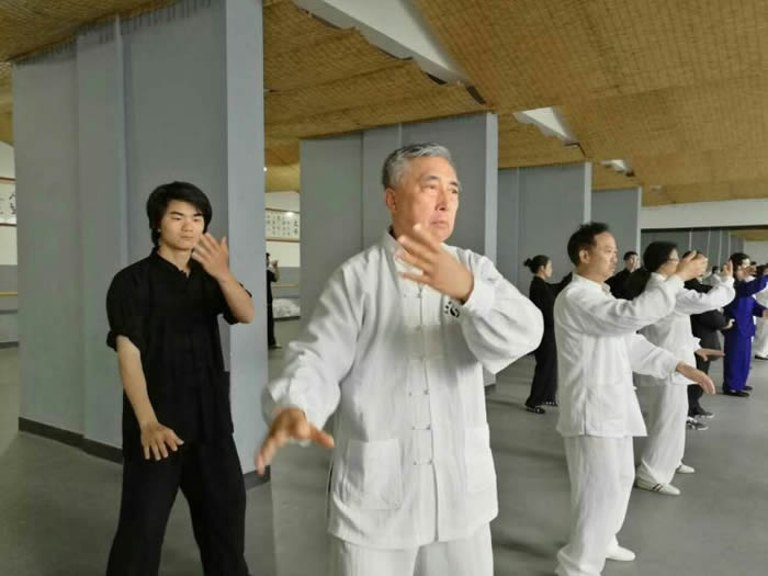 师行道长在教学中要求我们”练习时要求形与意合,意与气合,气与神合,六合之中,神形俱妙,动作之中,绵绵不断,松沉自然,行云流水;动静之中如绵里藏针,刚中带柔,柔中有刚,刚柔相含,含而不露;呼吸之中,开合自如,深细长匀,息息归根。”
