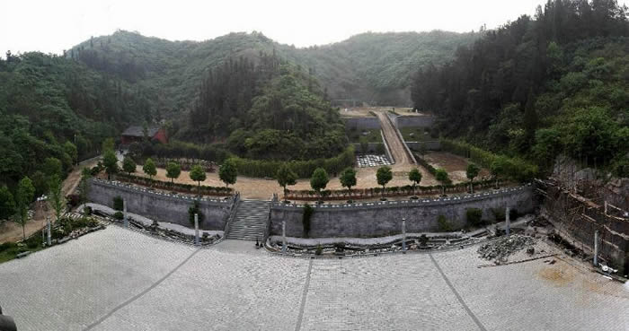 一座三清台大型道观练功场,层层叠起,气势恢宏,三面环山,藏风聚气。太清台、上清台、玉清台,一台一景致,耳目一新。