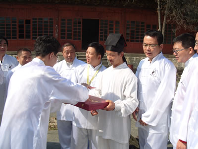 最后,道长接受了中山大学赠与的纪念珍品,随即表示希望与社会各界合作,推广武当武术的宏愿,并真诚希望团员们再来看看。