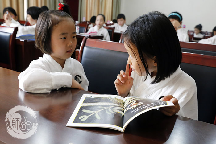 吃完美味的饭菜,再来一个踏实的午休,再来看看孩子们饱满的学习状态。来自加拿大的媛媛,才刚满7岁,竟然能全程用英文给山东小妹妹讲解课外书的内容,很棒哟!