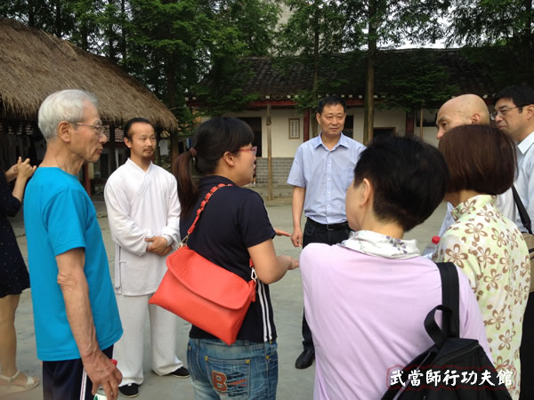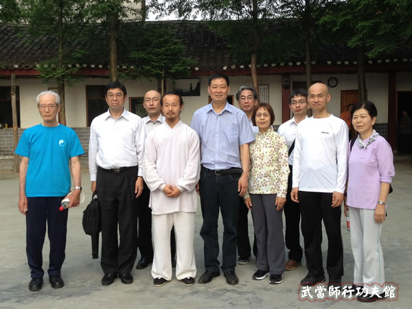 在学员功法课结束后,我馆教练和学员为代表团展示了武当七星剑、武当八仙棍、武当太极剑、武当玄门剑、武当伏虎拳、武当太和拳、武当太乙拂尘,三丰太极十三势等武当拳法。我馆教练和学员对武当武术的精彩演绎,受到在场众学员和参观人员的热烈鼓掌和一致好评。参观完毕,陈师行道长与武当武术局局长及日太极拳代表团合影。