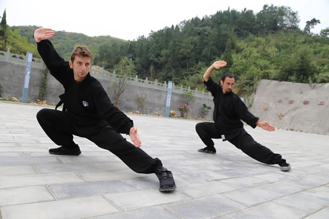 意大利四名学员分成两组:Roberto Morello 和Garofalo Umberto两位学员学习太乙五行拳和五形气功;Gabriele Misseri 和Frusteri Claudio 两位学员学习玄功拳2路/3路。意大利学员虽有武术功底,但学习武当功夫十分刻苦。晨光微曦之际,他们已在星空之下练功;斜阳洒落之时,仍不懈怠。他们所学功夫日臻成熟,归国前欣然表示:我们还会来的,还要把学到的武当武术在意大利传播开来。
