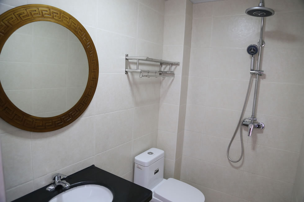 独立卫浴间,24小时热水,双淋浴蓬头,仿古圆框挂镜,洁净而卫生。