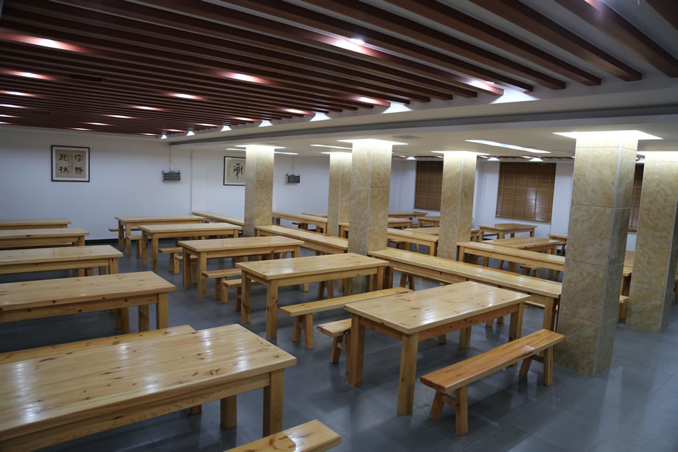 长条桌,长板凳,整洁而素净,大方而典雅,在此享用可口的饭菜,既放松又舒心。