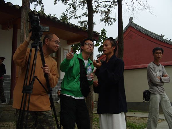 本馆弟子正在与本期节目导演交流拍摄角度