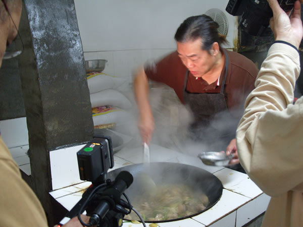 高师傅正在武馆厨房亲自下厨,当晚让本馆学员美餐一顿,赞不绝口。