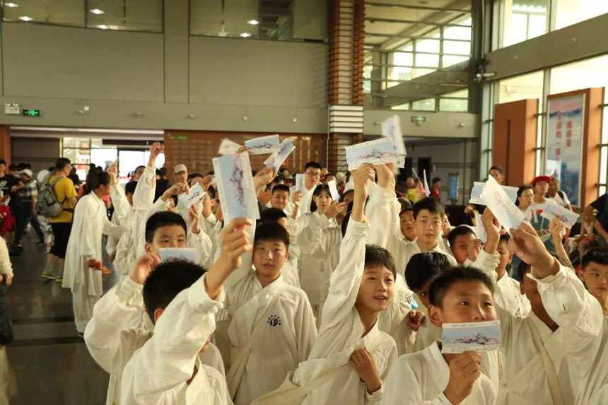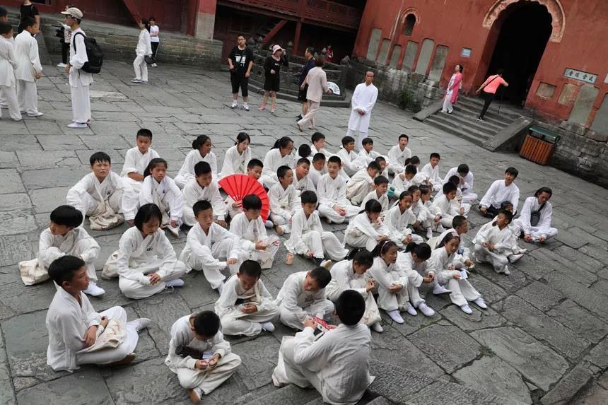 师行太极道院的近百少年侠客同上武当的梦幻场景。
