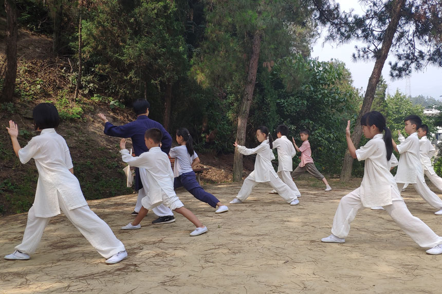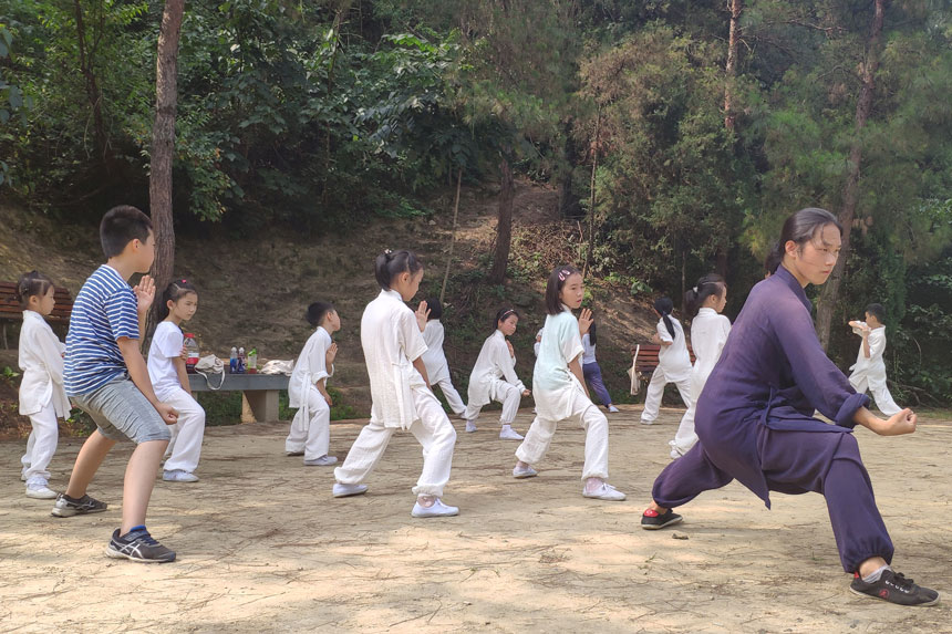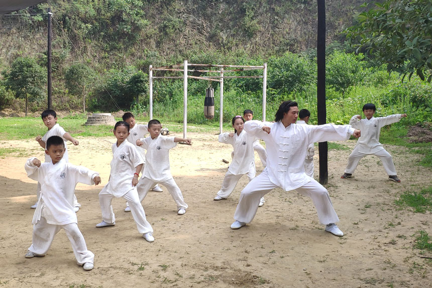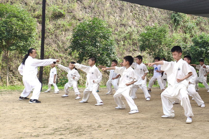 放眼四周,只见这里青山环绕,绿意盎然。在此习武的学员,大多都是少年儿童。孩子们身着白色练功服,神情专注,动作敏捷。