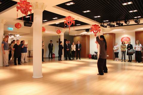 9月27日,驻俄罗斯大使李辉在莫斯科中国文化中心观看武当武术