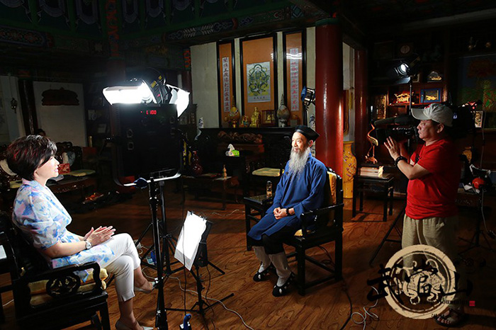 在紫霄宫,吴小莉主持专访,李光富简要介绍了中国道教发展的现状,回应了当前的热点问题,重点阐释了如何在新时代与时俱进,通过社会化和国际化弘扬道教,促进世界和谐的路径。