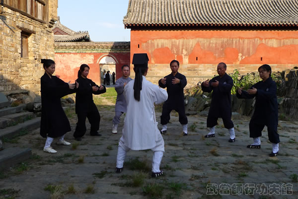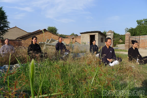 孟夏季节,艳阳高照,武馆里绿树成荫,可以听到其间叽叽喳喳小鸟的吟唱,看到它们蹦来跳去的身影。浓浓的绿荫遮挡住不少暑气,早上八点学员们开始早饭,九点之前他们自由活动,除对前一天教练教授功法用心揣塻,还包括一些简单的拉伸活动,九点后教练将开始新一天的正式授课,待日出三竿,不少学员经过大半天太极拳练习,额头已渗出微汗,但对武当功法的执着与崇尚,使得他们住往毫不在意,仍然会专注于拳法练习。下午四点,经过中午四个小时的休息的学员们已恢复了活力,此时才是一天中功法课程最佳的传授阶段。