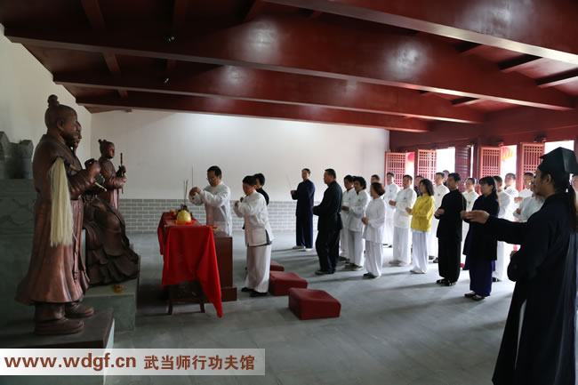 亲授班学员朝拜张三丰祖师,并学习道教朝拜礼仪。