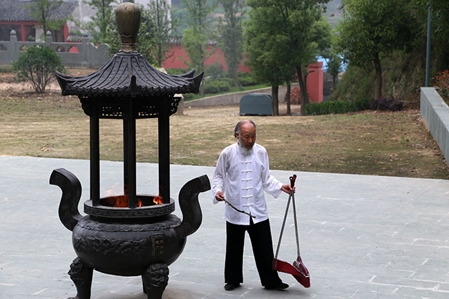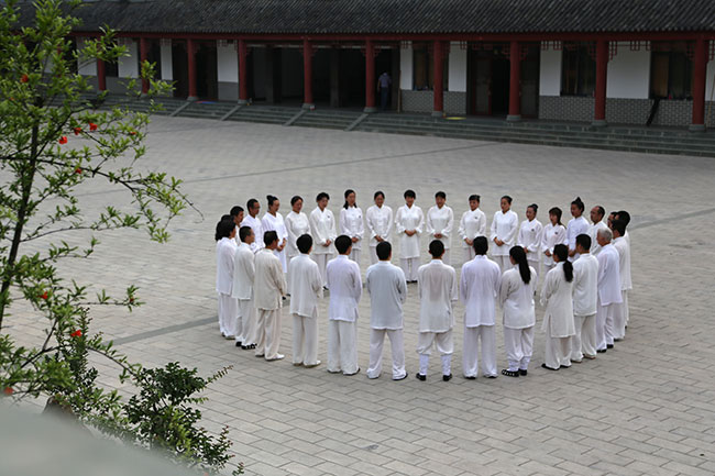 在这里我不仅见到仰慕已久的陈师行道长,并与他亲切的交谈,听他讲武论道,实在感到三生有幸,令我终生难忘。武馆对我们短期班的学员特别照顾,由于学员基础不同,学习内容各异,所以只能进行一对一的教学。我的教练——郝为华是一位习武十几年,修为很高的武术教练,十多天来没见他发过一次火,始终耐心细致、循循善诱的教我们。连我这个从事教育工作十几年的人都佩服他这种有教无类,因材施教,用爱、用心教育学院的精神折服,对我今后从事教育工作会产生积极的影响。