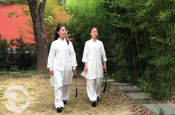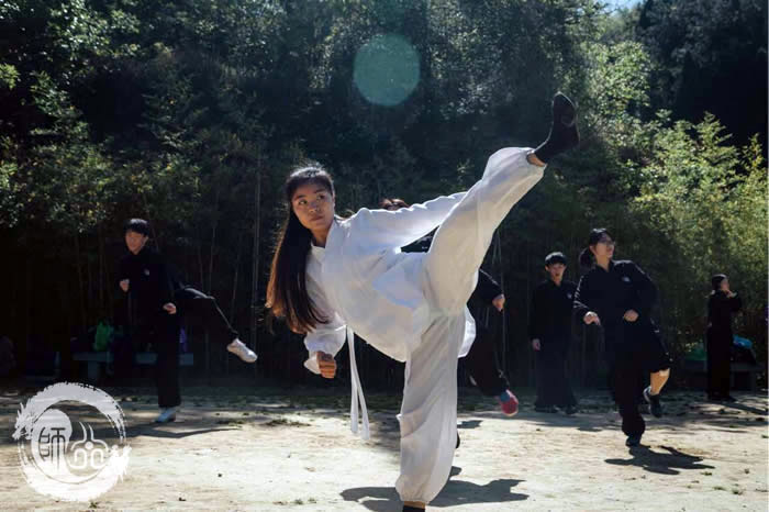 熟悉后方知,这对小姐妹来自陕西汉中,姐姐叫萱萱,今年24岁,妹妹叫力萍,不足18岁,目前是师行武馆半年制养生班的助教。问起姐妹二人与武馆的缘份,萱萱说是因为妹妹。原来,力萍属于虚弱体质,从小就抵抗力极差,经常会得一些感冒之类的小毛病,而且一病就拖很长时间才会好。她的记忆中一直与药为伍,别的孩子书包里装的是书本和玩具,而她的打开不是中药就是西药;别的孩子可以肆无忌惮地疯狂打闹,她却只能站在人群外巴巴地望着。家人看在眼里,痛在心里,却苦于无可奈何。两年前机缘巧合之下,有亲友向其介绍了太极养生的传承人师行道长。当时刚刚上初中的力萍在电视及网络上找了很多太极和师行道长的报道后,立即来到武当山脚下,找到武当师行武馆。在远离喧嚣的武馆内,跟着师行道长练习太极十三式及二十八式。一个月后,力萍明显感觉身体在发生细微的变化,以前爱找上自己的感冒好像来得没有那么频繁了,隧将喜讯与家人分享。当时萱萱刚刚大学毕业,在一家医院内做护理工作,本就对妹妹放心不下的她,听到太极对力萍真的养生功效后,毅然决然辞去安稳的工作,来到武馆准备长期学习来陪伴妹妹。