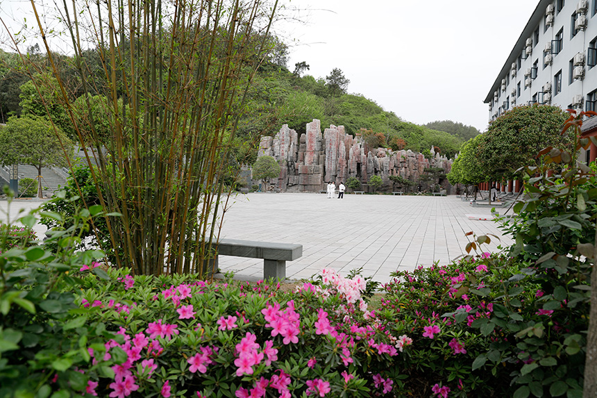 春天里,几簇杜鹃,在青砖铺就的练功场边,开得盎然,学员们练拳正紧,道长伫立良久,说:“看,那边的杜娟开得多好!”