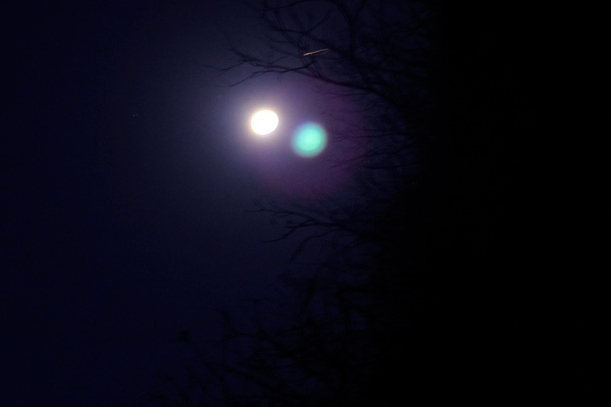 那一刻,这样和那样的念头来了又去。不经意间一回头,却看到,稀疏的树影之上,一盘古月印落中天,月下青山暗沉,在薄薄的云影间浮动。突然觉得,在这样的月夜里,这些问与答,这些思与想,好像也变得不那么重要了。