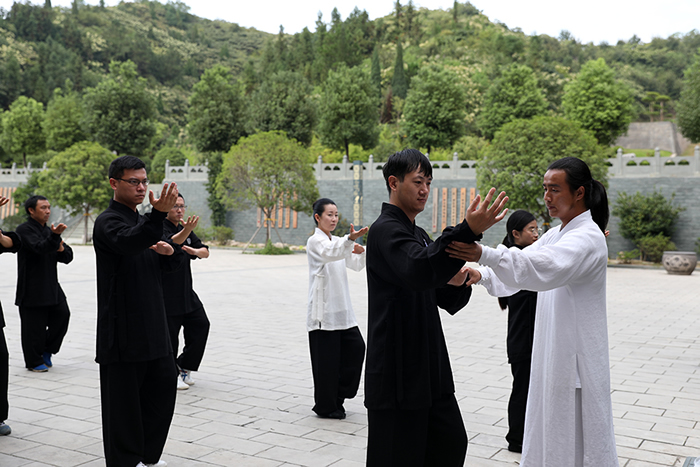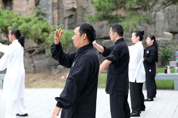 在师行武馆期间,设计院团队白天在太清台上跟随教练练习功法,通过功法学习放松身心。由于设计团队一行人都是长期伏案工作者,平时运动量较少。功法掌握之后,在日常工作之余都可以进行练习,对于改善亚健康状态有很好的效果。